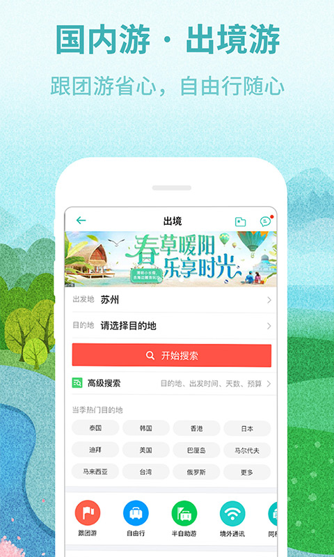 全球热门目的地旅游团预订、半自助游预订;跟团自助随便怎么玩;