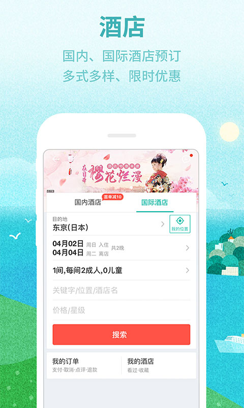 国内及港澳4万余家酒店预订,入住发点评赢奖金,手机预订返得更多;