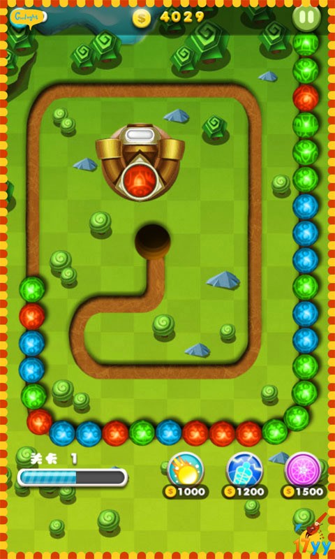 开心祖玛是一款消除类游戏,游戏分为三个大关,以地图的形式显示。刚进入的时候只能选择第一大关,每一个大关下分别有10个小关,当你通过游戏时会自动开启下一关。没关里只要把小球消除完就可以通过,游戏过程中会出现金币,用小球打中它就会落下火球帮你消除最前面的小球。如果你中途有事也可以点击暂停,回来接着玩。游戏玩法简单,大家快来闯关吧!