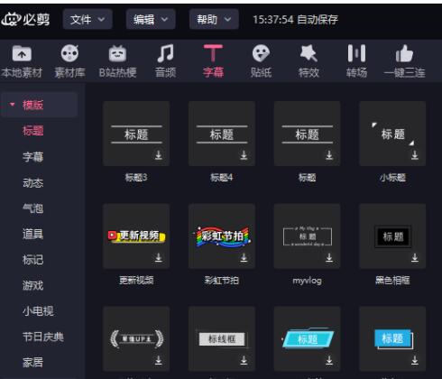 1、【素材】软件中有非常很多的素材,音乐库、贴纸等等戏院可以随意的挑选。