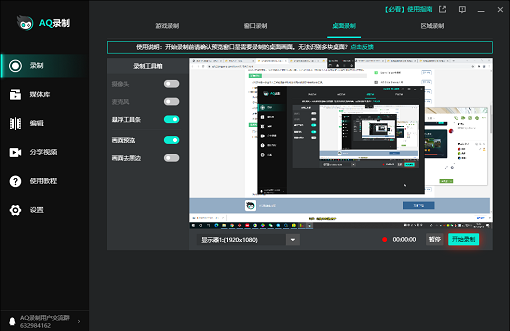 AQ录制最新版是一款非常优质的功能非常全面的视频录制工具,用户可以轻松的帮助用户录制自己想要录制的视频更有各种实用的小工具帮助用户快捷的进行录制。