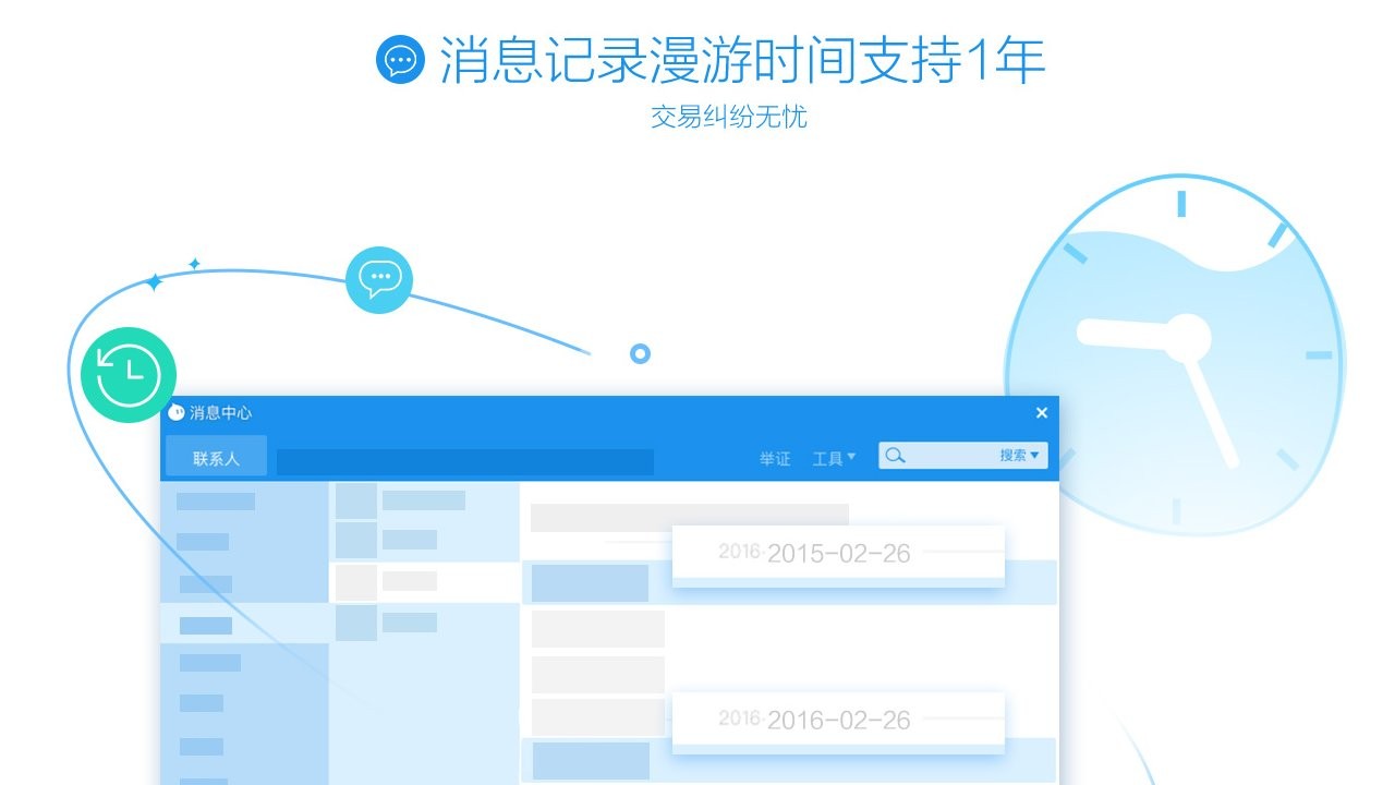 (3)支持手机和电脑同时登陆,联系人、聊天记录和快捷短语与电脑无缝云同步,可添加好友,查看买家个人主页;
