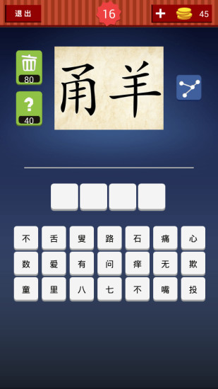 4、准确地猜出本题目才能进入下一题哦,实在不行,可以使用金币进行提示。