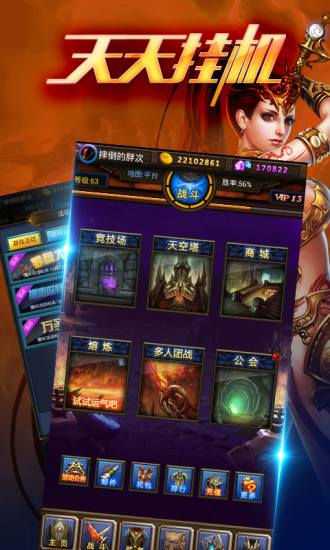 天天挂机手游是一款全球首款放置rpg游戏,在这里灵魂的封印被解开,完美装备自动捡,从你创建角色开始就开始不停地刷图过boss,即使下线退出游戏也不!会!停!你的旅程即将开始…容易上手,难于精通!