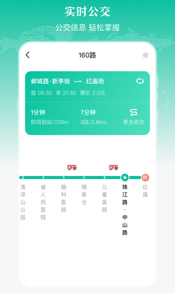 拥有舒适的即时公共汽车侯车观察功能,可以让你可以随时随地知道车辆的实时信息。