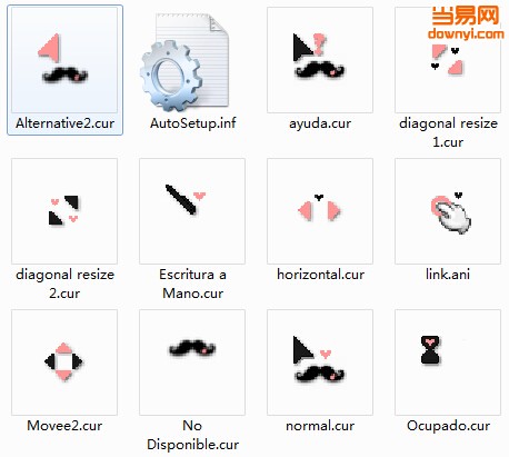可爱小胡子鼠标指针是一款根据我们男士性感小胡子主题灵感所制作而成的鼠标指针。小编今天为大家带来的这款指针有运行、单击、帮助等多款指针任君选择,非常适合搭配酷炫风格的电脑主题使用。