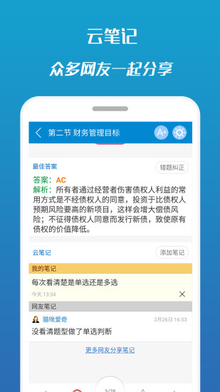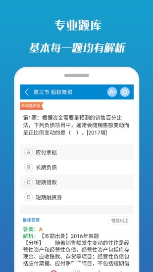 中级会计考试app是掌云科技为广大中级会计职称考生提供的会计考试软件。用户使用此软件你可以在手机上轻松做题,掌握知识点,提高考试通过率。不仅有系统的章节练习,强化训练,顺序练习等。还有海量的知识题库,帮你牢牢掌握知识,并且还有错题练习让你不再犯错,更有模拟考题让帮你考前预热。喜欢的朋友快来体验吧!