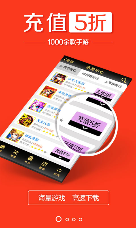 快返手游是一个给玩家提供高额充值回馈的手游返利平台!所有游戏充值5折,终身返利,自动返利,充值自动返利24小时无障碍,500余款游戏任选,海量礼包一网打尽,是手游玩家的必备神器!