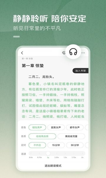 语音朗读功能:支持语音朗读,您可自由选择语音和语速进行听书。