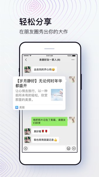 一键分享到微信朋友圈、QQ、空间、微博等社交平台,与朋友们分享交流,迎接朋友的赞赏和评论,你也可以在美篇看到微信好友们的作品;