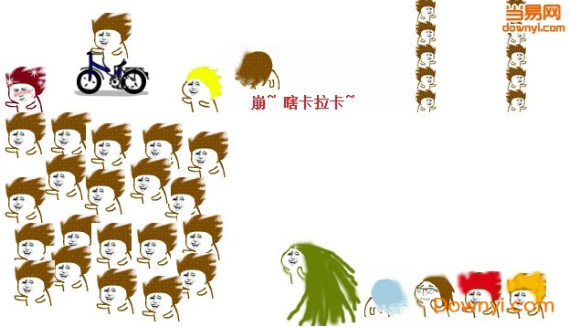 暴漫甩头表情包(金馆长甩头表情包),表情有骑单车甩头,崩~瞎拉卡拉~,两列一起甩头,一堆人甩头,甩长发,服彩色头发,打自己的肚子,一块打一个人的头,小兔兔蹲蹲。