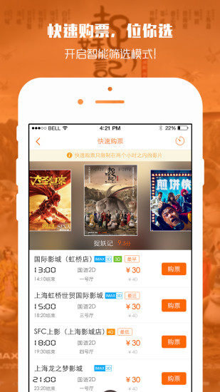 4.实时更新最新影讯,不管你身在何方,都可以满足您的观影需求,全国200多个城市,提供超过2500家影院的实时放映时间表,随时随地轻松选座购票。并且可定位离自己最近的电影院,更高效快捷的选片购票。