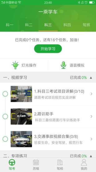 一乘学车手机版一款放心的学车软件,让学车的朋友随时随地就能打开手机学习考试内容,更有视频教学,对刚刚学车的新手非常有帮助。喜欢的朋友快来下载试用吧!