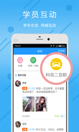 【基本功能】 权威题库、路考秘笈、网上约车、在线约考、学车提醒、专属客服