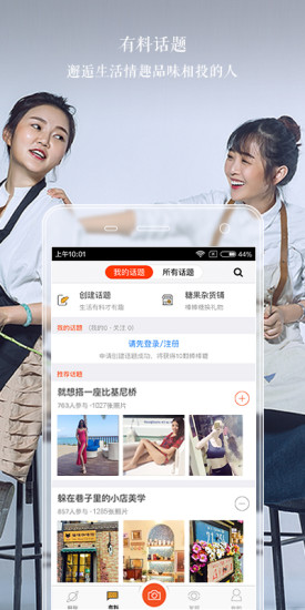 邂逅生活情趣品味相投的人,共同交流感兴趣的话题,你还可以创建属于自己的话题;