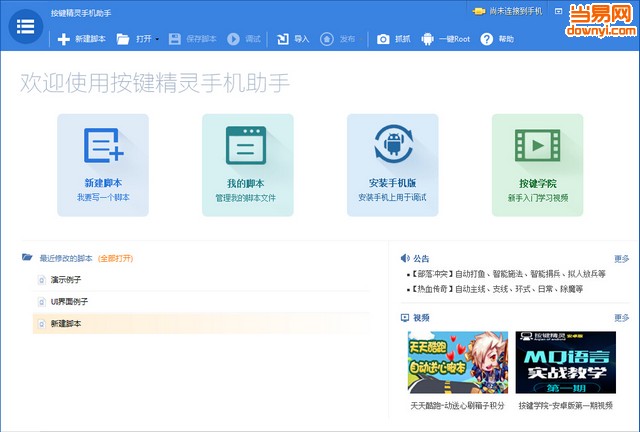 按键精灵手机助手,是配合按键精灵手机版进行使用的,它是一款手机脚本制作软件,能让您无论在手机端还是电脑端都能进行脚本编写,是手机应用开发者量身打造的开发利器!按键精灵手机版是模拟手指在屏幕上动作的应用,能让你解放双手,告别重复操作。