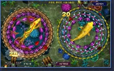 当此类鱼阵来袭时,呈现各类小鱼以圆环状前进,从小到大,层层突进,奖励越来越丰厚!