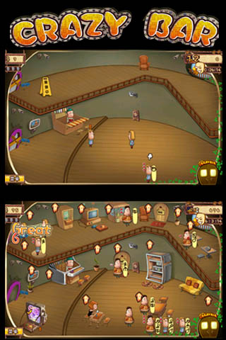 玩家需要扮演crazybar的店主,在开店后,会陆续有游客进入crazybar内,他们身上会出现想去娱乐设施的需求,玩家需要点击游客,指引他们去有需求的设施处进行消费。当达成所需营业额之后即可过关。过关后会获得评价。评价越高所获得的啤酒数越多,最多3个啤酒。