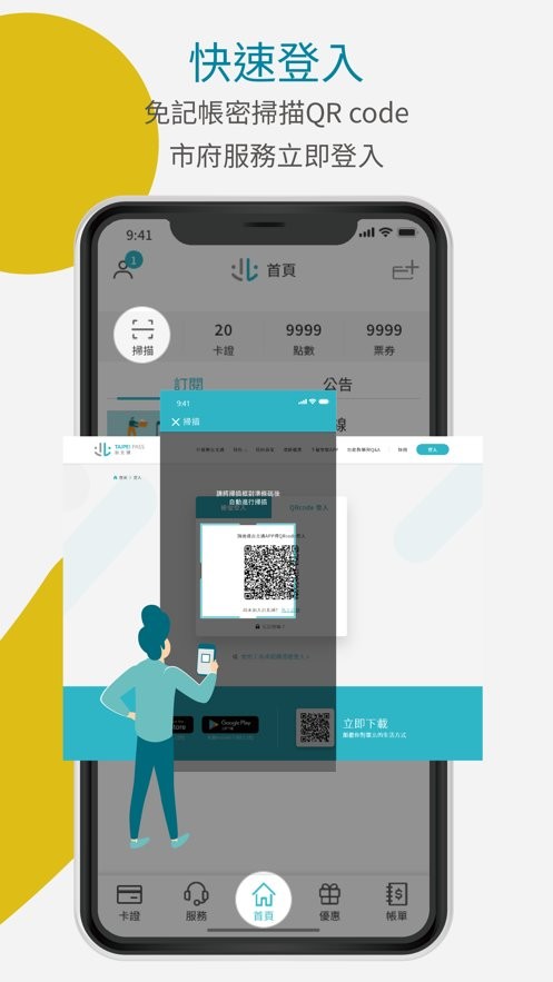 台北市政府将个人身份识别结合多项市政服务,连接各项线上与线下服务,打造市民专属台北通 TaipeiPASSAPP加入台北通,会员即可享有多重优惠与便民功能,卡证服务、场馆优惠、帐单查缴,以智慧台北实现城市居民幸福感!