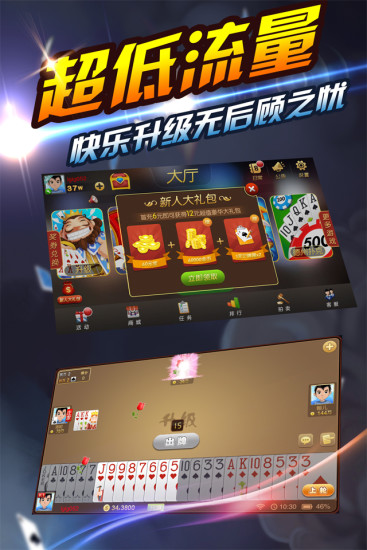 升级手机版是一款以升级拖拉机为玩法的手机棋牌游戏,游戏有两副牌、三副牌、四副牌的玩法,非常有趣,跟一般的纸牌游戏玩法完全不同,也是小编非常喜欢的一款纸牌游戏。欢迎来体验。