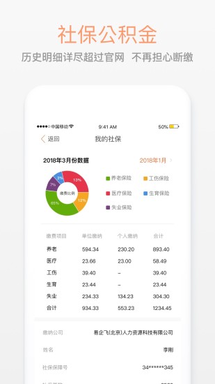 3、企业福利:社保公积金随时查看,公司活动随时报名,我的可休假期一目了然,还有各种福利等你来领!