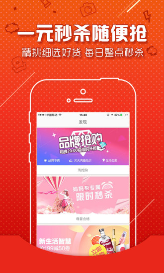 红包夺宝app直派现金红包,每日整点抢不停,更有机会赢VIP大奖。更有红包夺宝机环节,1元云购热门商品,团购逛街海淘的利器。仅需1元,分分钟变潮人,闯世界。现有千万用户参与,玩乐不间断!