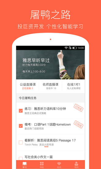 学为贵雅思是学为贵网官方推出的雅思课程教学辅导app。它不仅能为学生们提供最新最优质最实用的雅思课程的听力、口语、写作以及阅读等全方位训练服务,还能让学员随时随地查看复习内部讲义、完成作业、提交、查看老师批改反馈、师生即时互动等。真正开启并引领了移动互联时代的新一代教学方式,绝对是每个雅思考生不可或缺的必备神器。