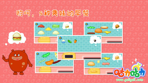 咕力早餐车游戏是一款专为小朋友研发的休闲益智类的手机游戏,可以很好的帮助解决小孩不吃早餐的问题,通俗易懂的游戏画面,活泼有趣的背景音乐,赶快来下载体验吧,更多精彩好玩的手游尽在当易手游网!!!