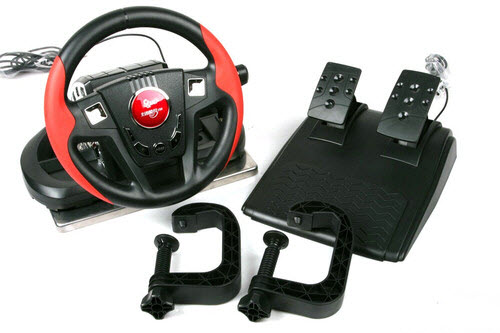 北通瞬风188方向盘由踏板、方向盘两大部分组成,为了确保方向盘放置稳定,还附送了两个C形夹。