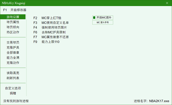 nba2k17l修改器客户端使用方法: