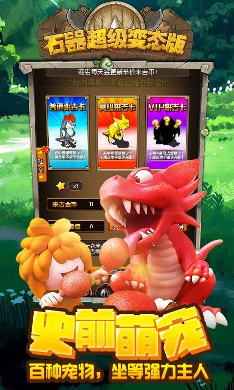 石器挂机满v版是一款专为大忙人设计的防止挂机手游,只需点一点,就能将整个游戏玩转!就算没有时间,也能重返石器时代寻找史前萌宠来玩耍,不用肝到吐,离线也能长经验!感兴趣的小伙伴快来当易手游网下载体验吧!