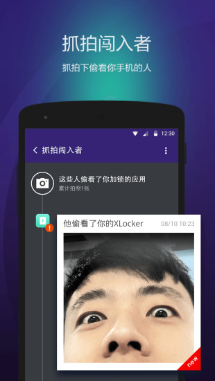 5、抓拍偷窥者:解锁输错密码就自动拍照,清楚了解谁在窥探你的手机隐私;