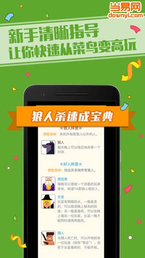 3、系统自带法官,不担心主持人不熟悉规则,忘词、弄错流程等;新手不担心,简单易懂的新手指引,让你秒变狼人老司机