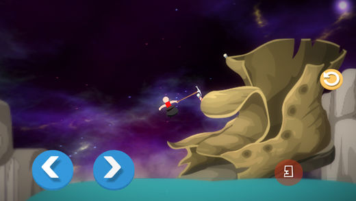 2、玩家控制一个坐在似乎是缸里的人,用一把榔头不断往上爬,操作极其简单;