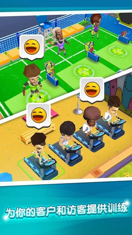 超好玩的健身房经营游戏。基本玩法是达成顾客的健身要求,提供果汁吧或者挑战赛,不断累积财富和材料,扩大自己的健身房。