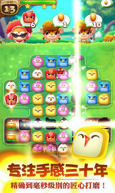 萌鸟大爆破是一款消除类休闲手游,它突破传统三消的桎梏,加入了2X2消除玩法,让过关方式更加多变,游戏消除更加爽快~