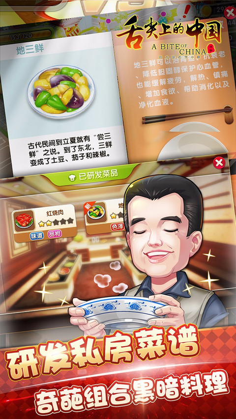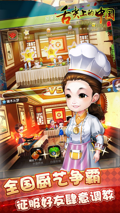 舌尖上的中国以真实食材和丰富的玩法带你体验美食之旅!轻松新颖的主线关卡,自然柔和的Q版画风,结合中国各地特色的美味佳肴、性格各异的萌系员工、个性时尚的餐厅装饰,加上和你互动的社交好友,在这里可以享受经营的乐趣,轻松的卡牌玩法和完美的休闲游戏体验!