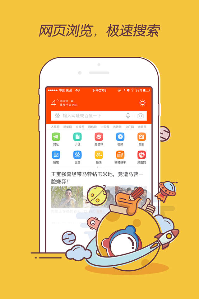 百度浏览器苹果版这是一款专为用户制定的掌上浏览器,百度浏览器可以体验极速的上网功能,一键语音搜索功能,带给更多的优质体验给用户,简洁清爽的画面风格,十分的好用,有需要的用户可以来试用!