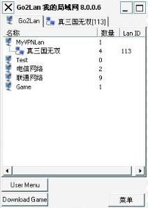 5、加入局域网:再将你的局域网名称,密码告诉你的好友,点击菜单加入局域网再输入lanid里输入113,点确定。就可以进入虚拟局域网了。