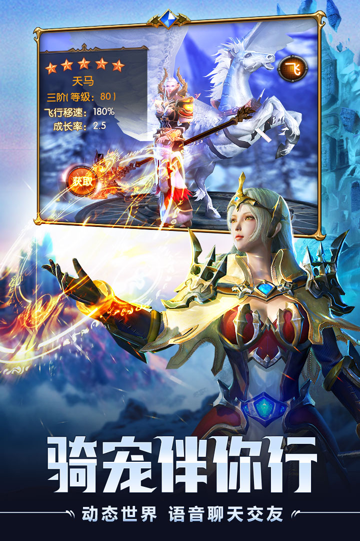 时刻伴随的坐骑、萌宠个性十足,陆、空两类坐骑让大世界不再遥远,战斗型宠物、辅助型宠物可帮助玩家应对不时之需!更有好友实时语音聊天,让你在这个魔幻大世界自在畅玩时绝不孤单!