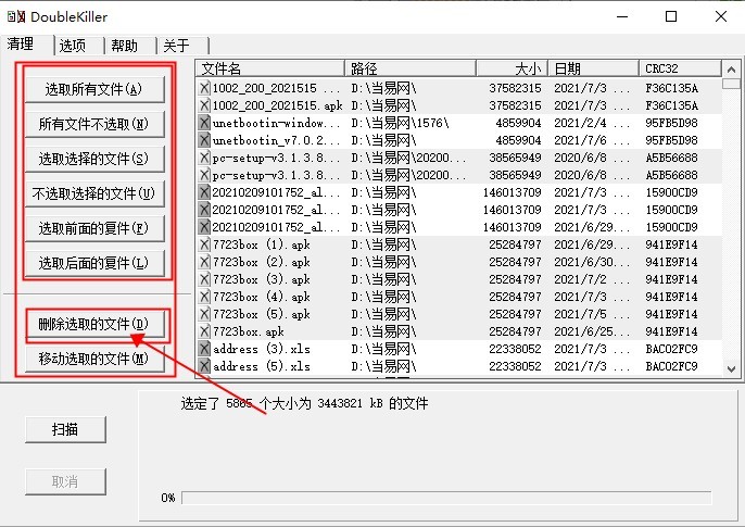 2、扫描完成后,可以根据自己的需求进行删除或者移动重复的文件,如图: