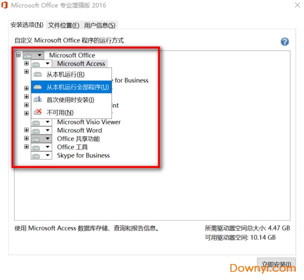 (1)安装选项这里选择安装或者不需要安装的office组件