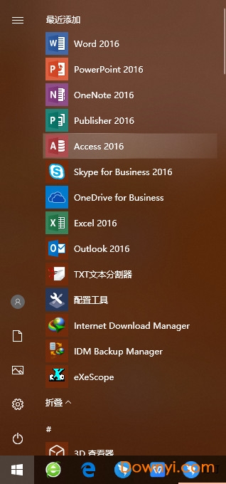 5、安装完成,打开开始菜单,可以发现出现office 2016各种组件,如图:
