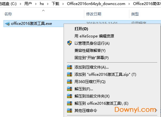 2、打开解压后的office2016激活工具文件夹,以管理员运行打开激活工具,如图:
