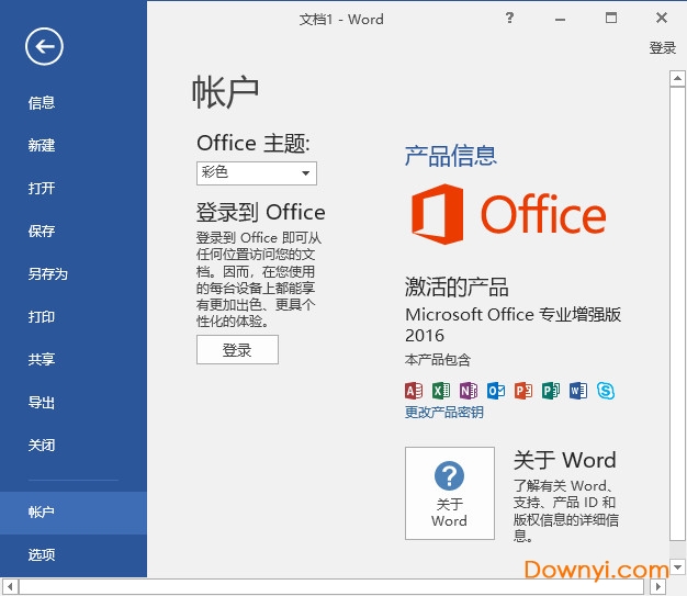 5、office2016怎么看是否激活?随机打开office组件,点击文件,再点击账户,可以看见office2016已经激活,如下图: