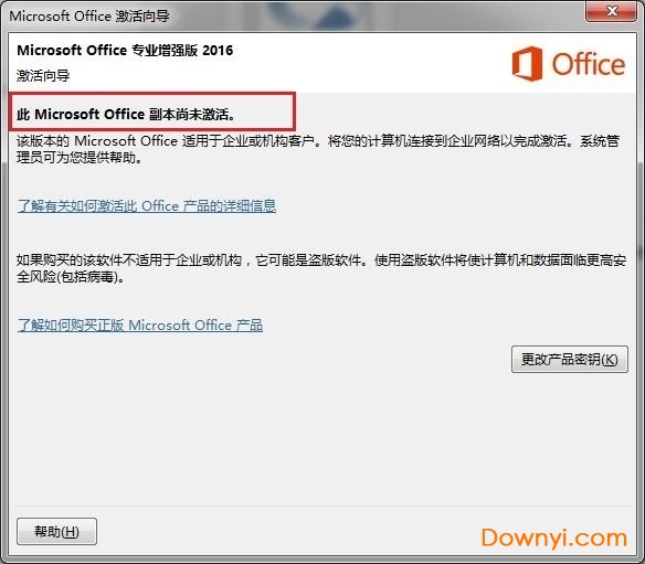 1、随机打开一个office2016组件,会出现副本尚未激活提示,如下图: