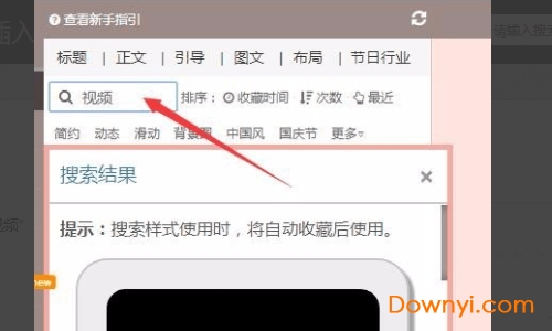 2、然后打开135编辑器,接着在左边的搜索框中输入“视频”,选择一个自己喜欢的样式。