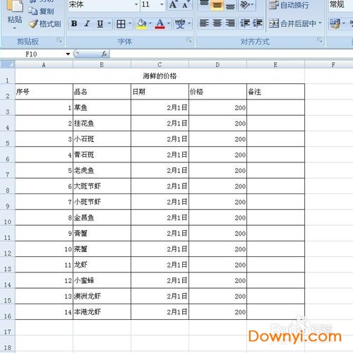 7、这个时候我们就可以往里面填写主题和我们想要分的一些项目,如下图以海鲜的价格为例;