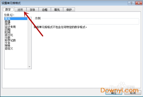 5、打开设置单元格格式的窗口,我们在上面点击“对齐”选项,如图所示。