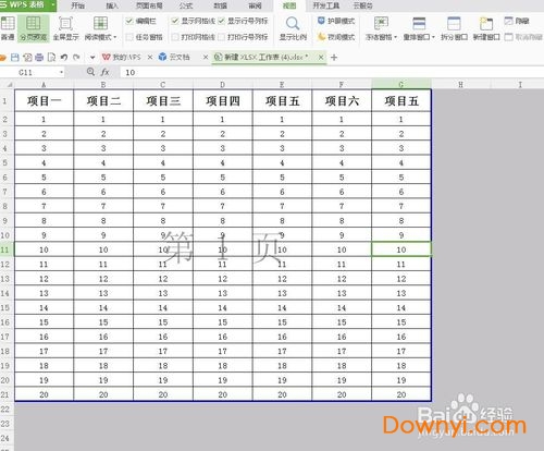 5、点击分页预览后,我们的表格中会出现几条蓝色线条,这个蓝色线条就表示的打印的区域。这时候我们将表格中“项目六”边上的蓝色线条,向右侧拖拽到表格结束的地方。